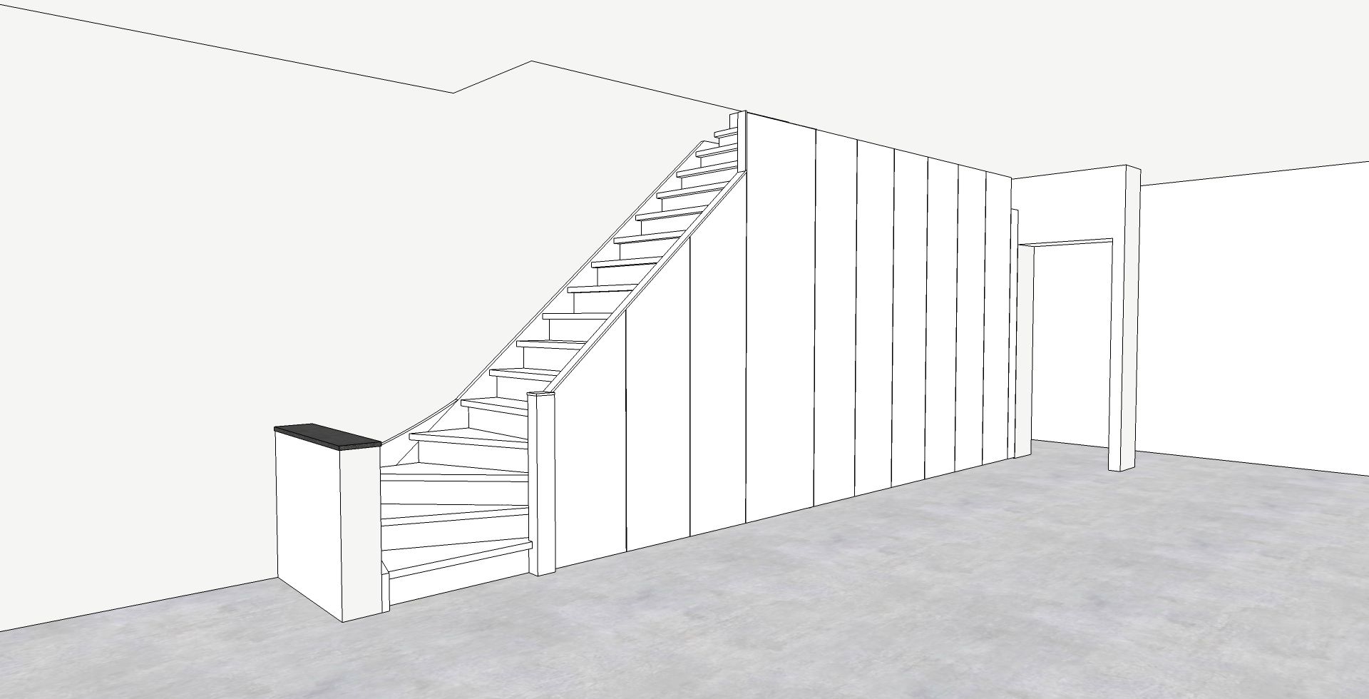 Toegegeven, de niet bepaald fraai oogende zijkant van de trap stond in alle mogelijke richting behoorlijk tot ontzettend scheef. Maar dat is wat maatwerk inhoudt: een oplossing op maat uitwerken waarmee de dromen van een klant alsnog kunnen uitkomen, tegen een eerlijke en betaalbare prijs.