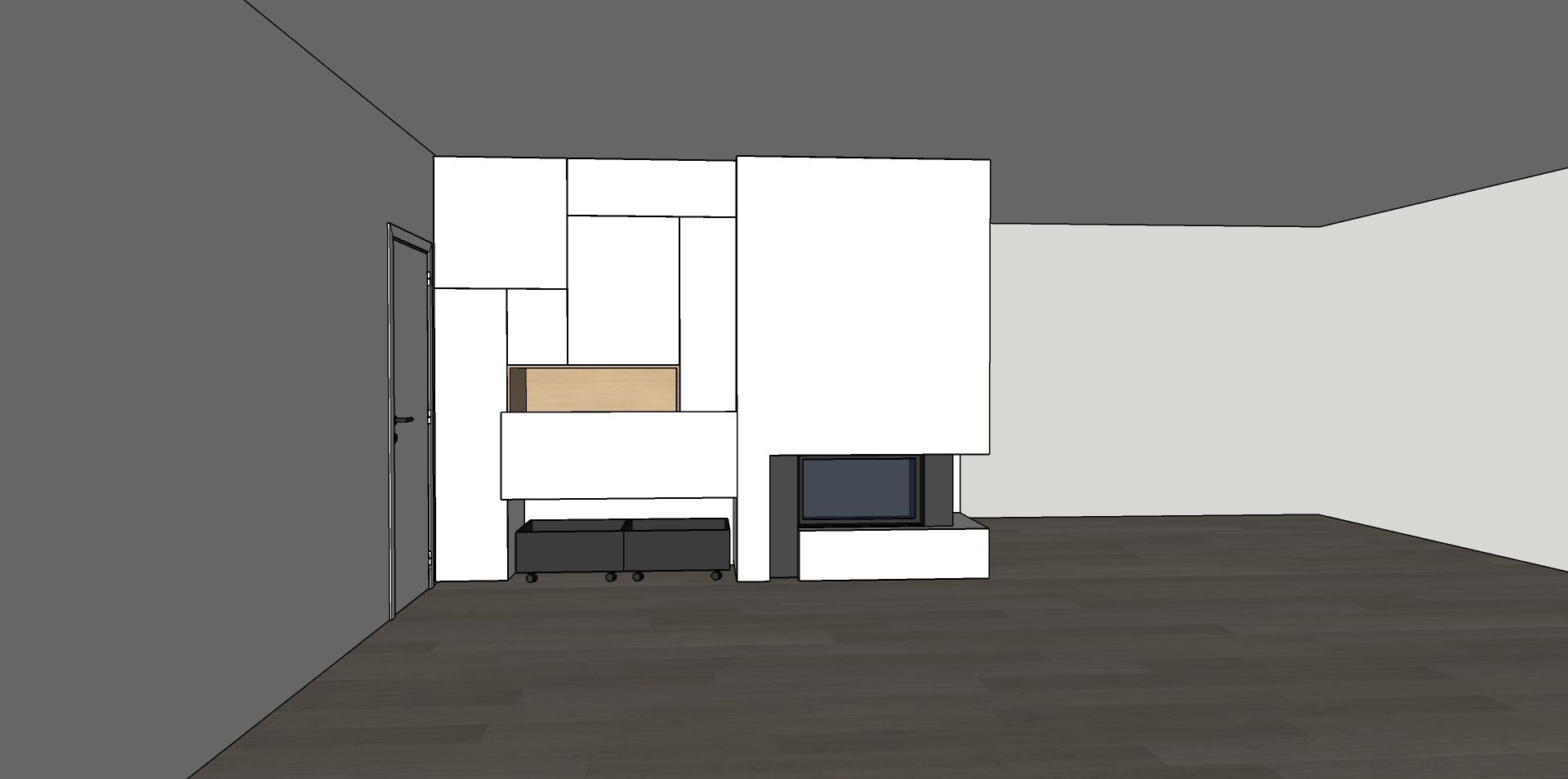 Minimalistische bureau- en TV-wand in Gent (21-051a)